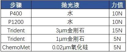 研磨過程嵌入:在研磨時,研磨表面(砂紙)涂上石蠟,石蠟在潤滑的同時,也能固定脫落的研磨顆粒。 拋光過程嵌入:降低加載力值;盡量縮短拋光過程,使用研磨代替(例如:P1200砂紙研磨取代9μm金剛石拋光)。   2、拋光 ■? ? 去除研磨后的劃痕,而非掩蓋   行業俗話:硬材料,難磨易拋;軟材料,易磨難拋。   軟金屬樣品的拋光過程決定了樣品制備成功與否,經常在終拋完成后樣品表面: 1)依然存在較多細微劃痕,難以去除 2)劃痕消失,腐蝕后劃痕出現 3)金屬流變、延展明顯等現象   那么如何來通過參數、耗材的選擇(加載力值、拋光布、拋光液等)來優化制備效果, 去制備出一個表面無劃痕、無假象、無流變的樣品,下表中推薦了針對軟金屬相應拋光過程(可選)。