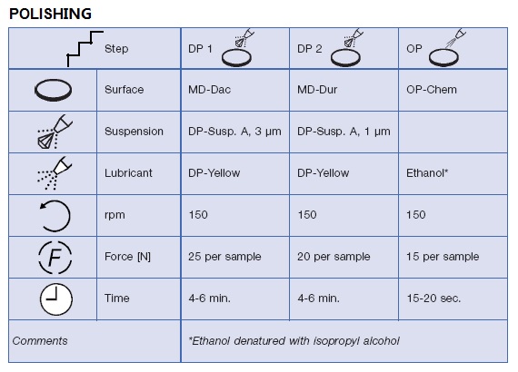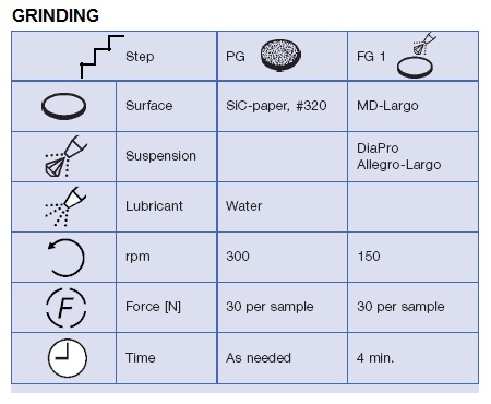 1熱浸鍍鋅(鋅合金)薄板的工藝流程 鋼板以連續前進的方式通過熔融的鋅(鋅合金)浴槽實現表面熱浸鍍,其鋼板表面酸清洗預處理、溫度控制和鍍層厚度控制都是以自動化方式進行的。 2各種熱浸鍍鋅(鋅合金)薄板的工藝 2.1 熱浸鍍鋅層: 含鋅量可達百分之99,厚度可控制在7~15微米;根據工藝需要,兩者可以進行調整。 應用:大量用于汽車生產,建筑構件和家庭用具,如洗衣機等。 2.2 GALVANEAL鍍層: 熱鍍鋅鋼板進行適當加熱(退火)處理,鋅元素發生擴散,生成含鐵量約百分之10的鋅-鐵表面薄膜鍍層,可以改善熱鍍鋅層的強度、耐磨性和焊接性能。 因為表面粗糙度增加,可以改善油漆涂裝性能以及鍍層耐腐蝕性。 應用:建筑物的裝飾立面,需涂裝的汽車壓延成形零件,內外儀表盤 2.3 GALVALUME鍍層 這種鋼板鍍層含有百分之55鋁,百分之43.4鋅和1.6百分之硅,具有良好的耐熱氧化性。 應用:建筑物的裝飾立面,汽車部件 2.4 GALFAN鍍層: 這是一種含有5百分之鋁及痕量稀土元素的熱浸鍍鋅層,這種鍍層具有細致的共晶組織,適用于深度拉拔,彎折,焊接,涂裝后耐腐蝕性很好。 應用:建筑業,汽車制造業以及家用電氣業。 2.5 電鍍鋅: 通過電鍍方法在薄鋼板上鍍鋅,可以得到很薄的均勻鍍鋅層,厚度在2~6微米,特別適合后續的油漆涂裝,在汽車行業應用廣泛。   3鍍鋅鋼板的防腐蝕機理: 鍍鋅在工業上廣泛應用于在大氣腐蝕環境中鑄鐵、碳鋼和合金鋼制件表面防護,其基本耐腐蝕機理是金屬鋅因其化學電位低,暴露在大氣和水里的鍍鋅制件表面還會形成碳酸鋅薄膜提供附加耐腐蝕作用。 為了增加防腐蝕作用,改善裝飾效果,鍍鋅制件還可以進行進一步的涂裝,使用材料通常是油漆及一些有機薄膜。   4鍍鋅鋼板的金相檢測: 鍍鋅鋼板質量控制除依靠在線物理性能檢測以外,金相檢測非常重要,可以獲得別的檢測方法不能得到的質量數據信息。金相顯微組織分析可以為產品的成形、焊接和精飾,為新產品的研發工作和失效分析提供不可或缺的信息。 如果鍍鋅層過厚,會產生焊接工藝問題;如果鍍鋅層出現擦痕或裂紋,隨后的油漆涂裝以及耐腐蝕性要受損。因此,金相檢測在改善產品和提高鍍鋅工藝水平方面具有十分重要的作用。 金相檢測的項目包括鍍鋅層硬度、基體和鍍鋅層的顯微組織分析、結合力測定和失效分析。   5鍍鋅鋼板金相檢測的特點: 因為鍍鋅層的制備工藝方法不同,鍍鋅層的硬度和厚度變化很大,對金相試樣的制備要求是不同的。制備過程中,鋅與水的反應帶來額外的困難。   5.1 鑲嵌收縮縫: 冷卻后在鍍鋅層與鑲嵌樹脂之間形成收縮縫,造成樣品清洗困難,在制作沖壓鍍鋅鋼板鑲嵌樣品特別容易發生。原因是金相檢測用于在線生產控制,因此要保證足夠的樣品數量。為保證鑲嵌質量,鑲嵌時間長為佳,但在線檢測要求即時檢測結果,鑲嵌時間不能太長,因此操作不當易生成收縮縫,導致水漬、酒精污漬、邊緣倒角、磨粒嵌入等制備缺陷,影響鍍鋅層厚度檢測和組織分析的效果。 5.2 磨拋劃痕 鍍鋅層硬度相對較低,以及易與水反應,可以在鍍層中產生劃痕,變色甚至受浸蝕。鍍層中鋅純度越高,鍍層越軟,對水反應越敏感。因此,熱鍍鋅和電鍍鋅通常硬度低,易于發生塑性變形,不能用水清洗,一般用酒精或異丙醇清洗。在添加鋁元素以及相應熱處理后,GALFAN鍍層, GALVALUME鍍層和GALVANEAL鍍層的硬度大于熱浸鍍鋅層和電鍍鋅層,相對問題較少,與水反應不太嚴重。   6鍍鋅層的金相制備 6.1 切割:可以用常規的氧化鋁切割盤, 很薄的鋼板可以裁紙刀切割。 6.2 鑲嵌:收縮縫問題可以通過用丙酮除油和選擇合適的鑲嵌樹脂解決,用延長老化時間和環氧樹脂冷鑲嵌可以基本避免。含碳纖維酚醛樹脂熱壓鑲嵌(POLYFAST)可作為優選方法,從而避免收縮縫并保持樣品表面平整。鑲嵌時,少量樣品可以用塑料夾子定位;在線控制檢測要求快速完成,數量較多鍍鋅層樣品可以用鋼夾子固定起來,但是會留下一些縫隙,清洗有一定的困難,使得厚度檢測和組織檢測因酒精滲出受到影響。使用快速膠粘合多個樣品后熱鑲嵌(POLYFAST)可以排除縫隙,得到合格的樣品。 6.3 磨和拋光:常規的鍍鋅鋼板用不同粒度SiC砂紙,再經2~3道金剛砂拋光。推薦用特殊的細磨盤(MDLargo)代替SiC砂紙,使用金剛砂噴霧劑或懸浮劑,縮短操作時間。MD-Largo方法可以保持樣品邊緣不倒角,這對于高倍觀察特別重要。隨后的拋光過程,用3微米和1微米的金剛砂拋光劑就足夠了。總的磨拋步驟可從6步減少到4步。不同的工藝生產的鍍鋅層硬度不同,但自動磨拋制備方法均適用。如果不用自動加料的磨拋系統,金剛砂噴霧劑因為不含水,也可以獲得好的效果。自動加料磨拋系統需要使用無水金剛砂懸浮劑和潤滑劑避免污染鍍鋅層。綢布可以保持樣品平整,有時也會產生劃痕。起毛絨布會產生表面浮突,要避免使用。自動加料磨拋系統(如RotoSystem)具有可靠的,重復性好的優點。   7鍍鋅層金相制備方法 7.1 研磨 7.2 拋光 8樣品清洗 ●? 鋅與水的反應使樣品清洗困難。在磨制過程可以不考慮,但是在金剛砂拋光時清洗劑推薦用添加異丙醇的酒精,用清潔的壓縮空氣干燥。 ●? 清洗用添加異丙醇的酒精在MDChem拋光布短暫輕拋,再漂洗和干燥,效果很好。如果使用自動加料磨拋系統,可用大劑量的無水潤滑劑,拋光數秒鐘,可以使隨后清洗方便。   9浸蝕和實例 常用浸蝕劑:0.5~百
